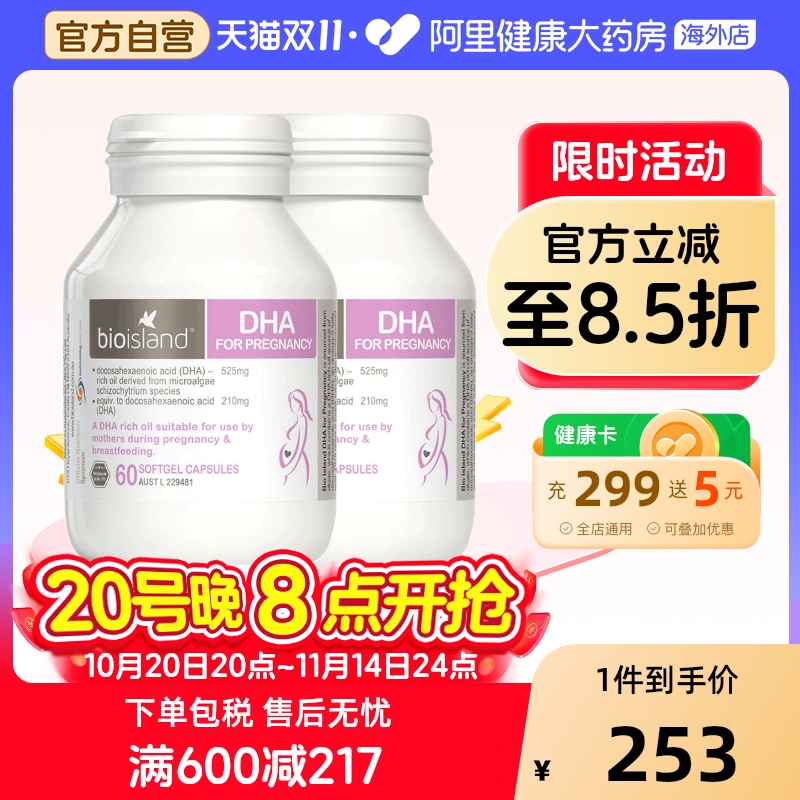 澳洲bio island孕妇专用DHA海藻油备孕孕期哺乳期胶囊60粒*2瓶