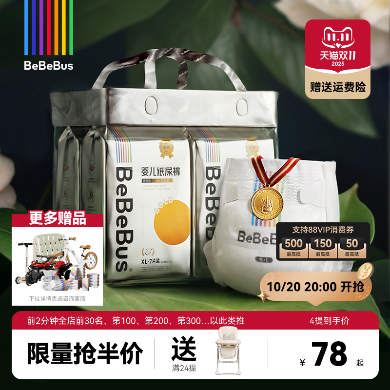 【双11】BeBeBus装仔金标纸尿裤婴儿宝宝nb/s/m/xl薄透气