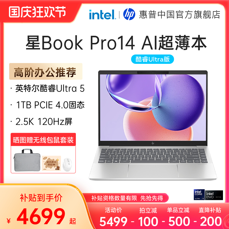 【爆款笔记本】HP惠普可选星Bookpro14英特尔酷睿Ultar5/7 高清屏