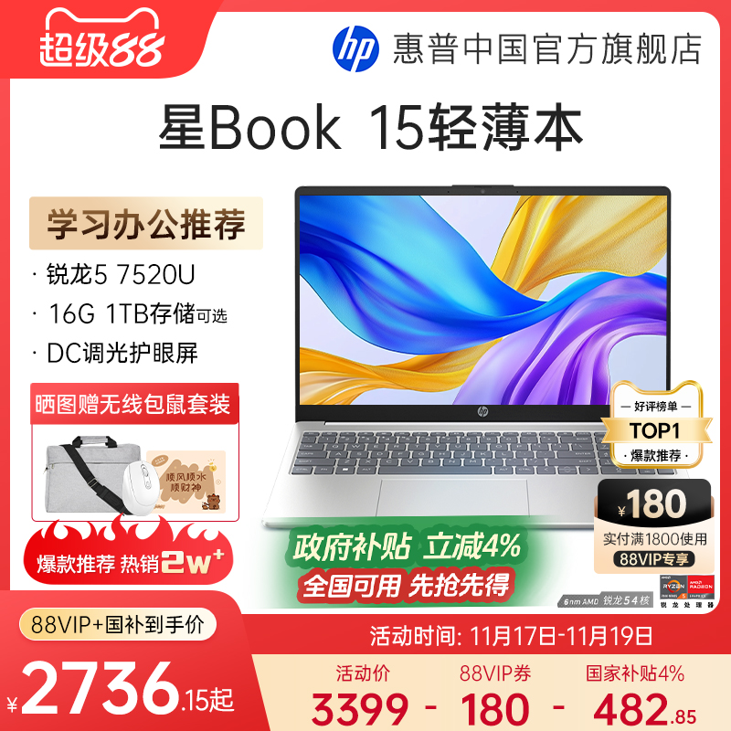 HP/惠普可选星Book 14/15锐龙 7000系R5处理器轻薄本笔记本电脑轻