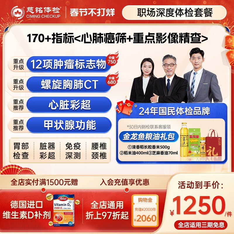 【职场深度体检套餐】慈铭体检肿标颈椎腰椎成人男女士通用体检卡