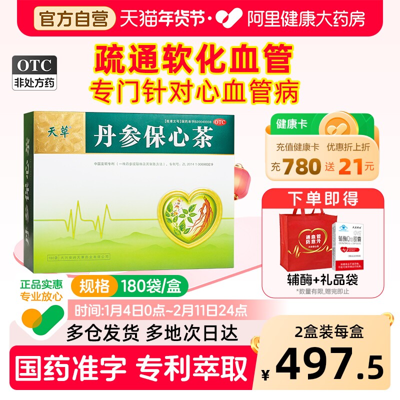 天草丹参保心茶180袋胸闷心痛心悸气短丹参护心茶丹心茶专用药