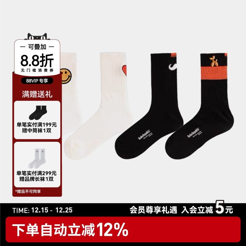 内衣共和新款春夏季男士运动中筒长筒女士吸湿透气纯色长袜棉袜