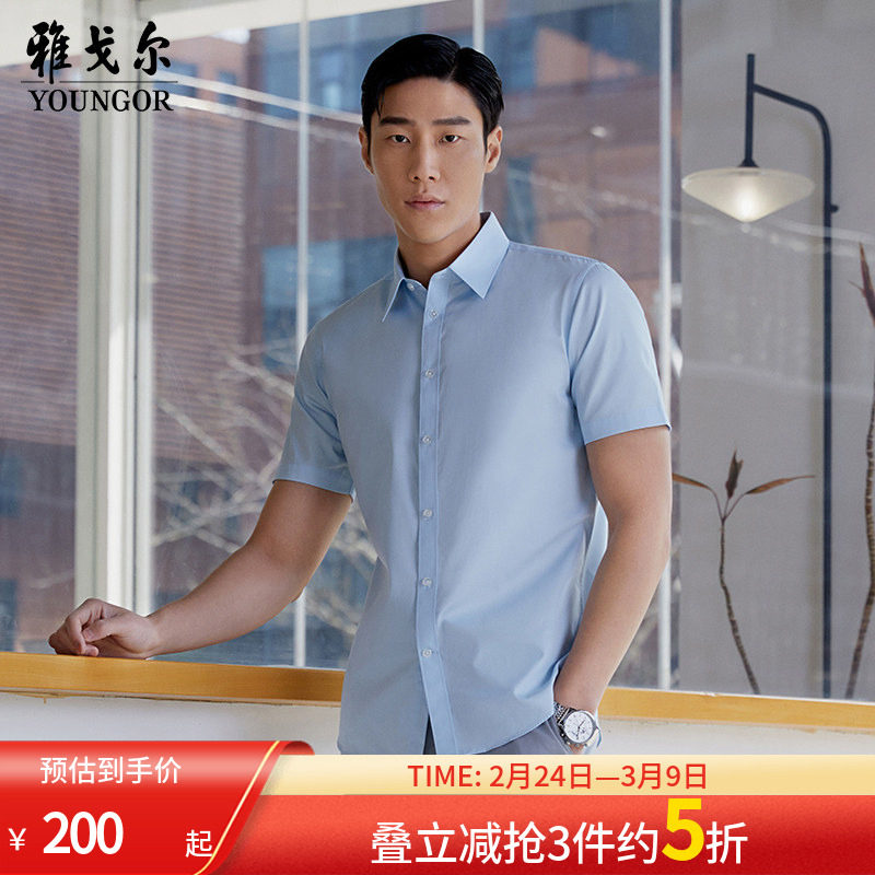 【棉涤易烫】雅戈尔短袖衬衫夏季商务休闲纯白修身职业衬衣男