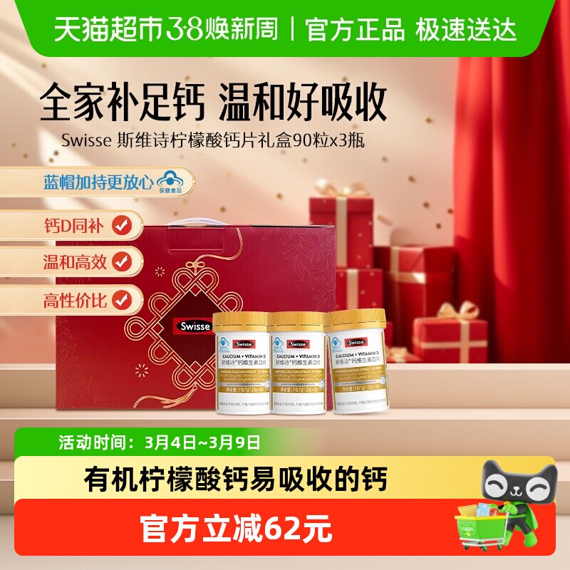 Swisse斯维诗柠檬酸钙维生素D3片剂1.23g*270粒礼盒装送礼中老年