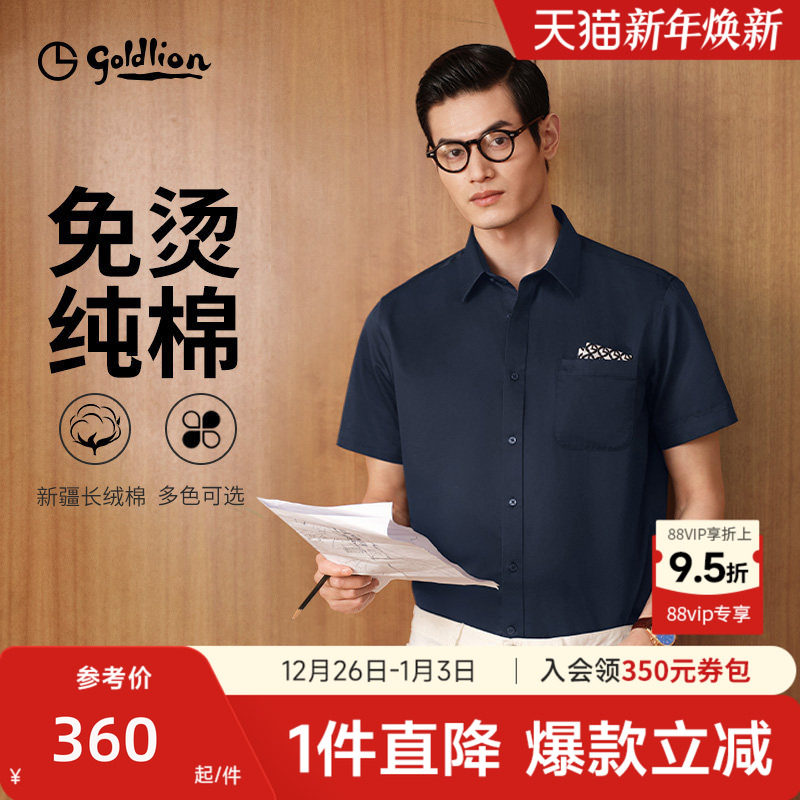 【免烫衬衫】金利来夏商务易打理纯棉衬衣宽松休闲短袖白色衬衫男