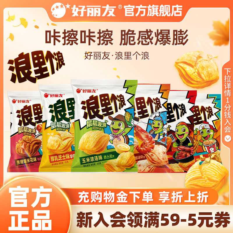 好丽友浪里个浪玉米浓汤芝士焦糖味爆米花薯片膨化童零食乌龟酥脆