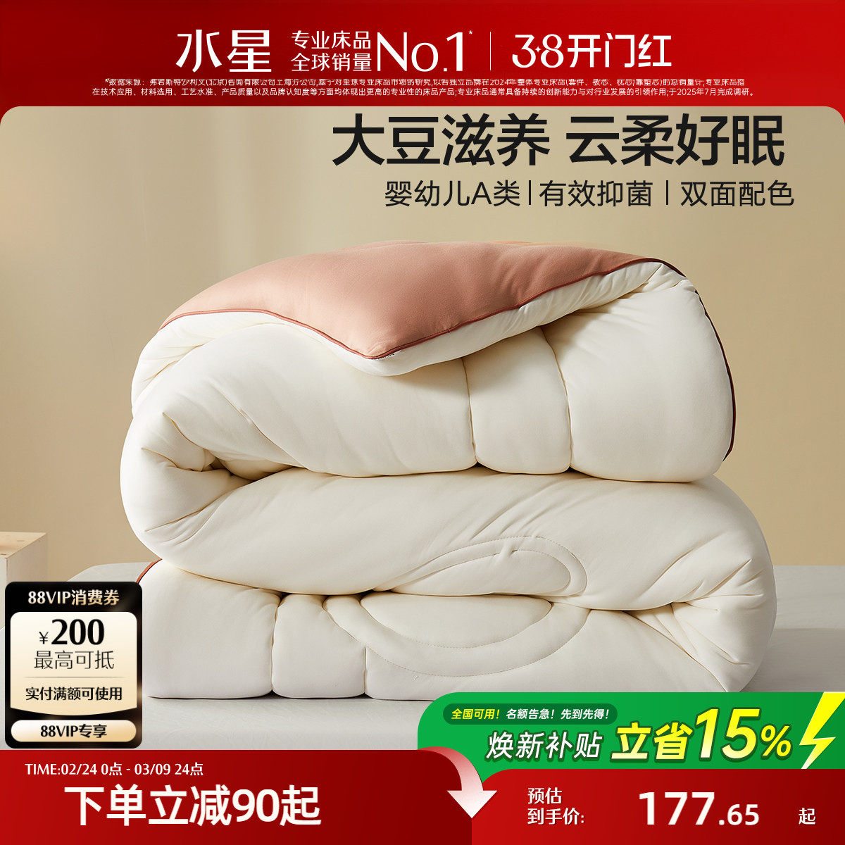 水星家纺抑菌大豆冬被保暖被子学生宿舍被芯四季被二合一被送礼