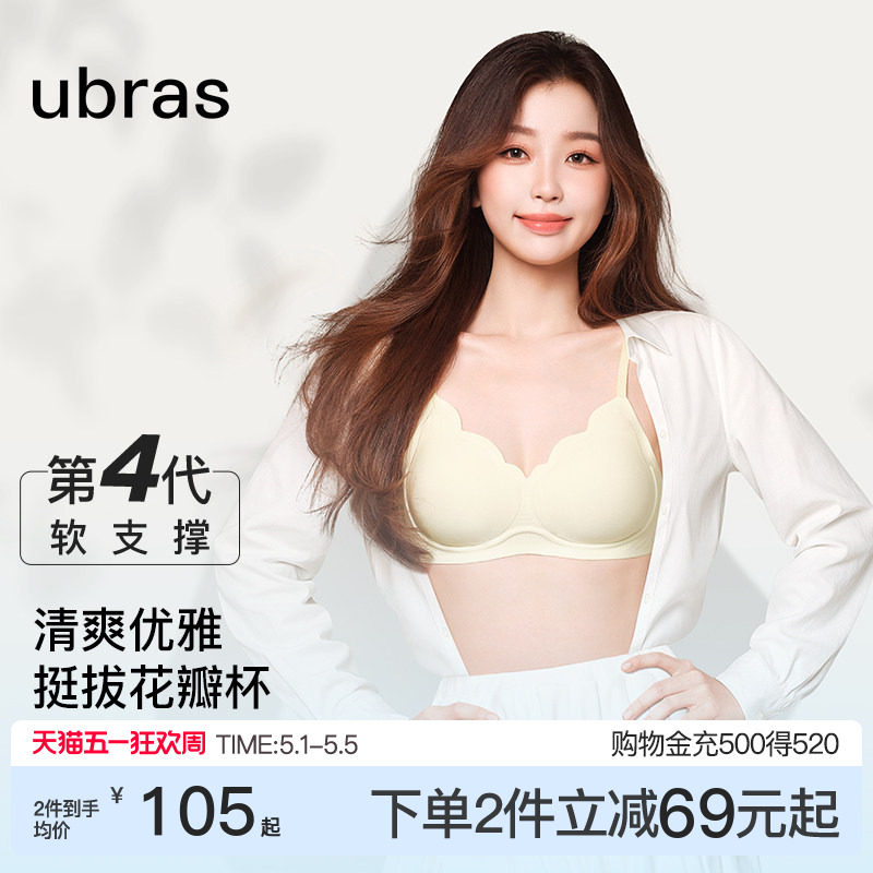 • 泡美丽»»虞书欣同款ubras小花瓣杯内衣薄款小胸聚拢性感纯欲无痕文胸罩女