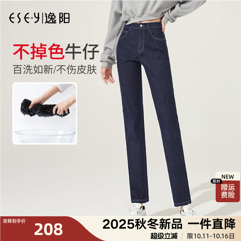 逸阳不掉色牛仔裤女2025秋季新款显瘦高腰原深色烟管小直筒长裤子
