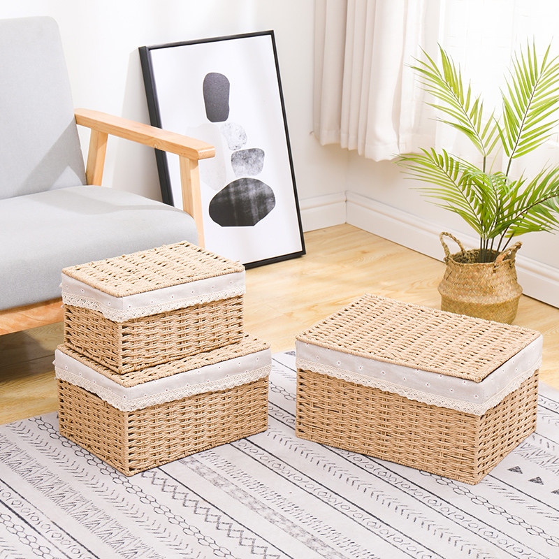 草编抽屉式收纳箱桌面玩具储物箱大号有盖衣物整理箱杂物收纳篮子