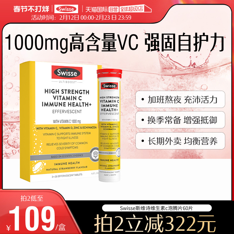 【自营】Swisse斯维诗维生素c泡腾片维C营养品提高免疫60片/盒