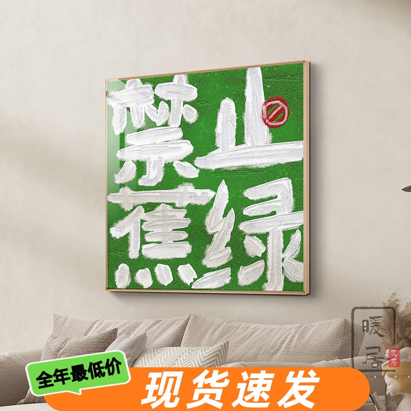 禁止焦绿小众文字装饰平安喜乐高级挂画感寓意好玄关客厅背景壁画