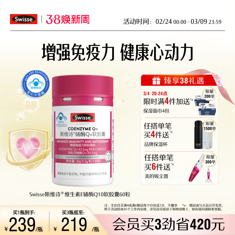Swisse斯维诗辅酶Q10维生素e软胶囊60粒保健品正品增强免疫力