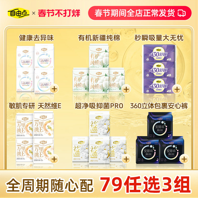 【79元任选3组】自由点益生菌卫生巾日夜用安睡裤超薄姨妈巾正品