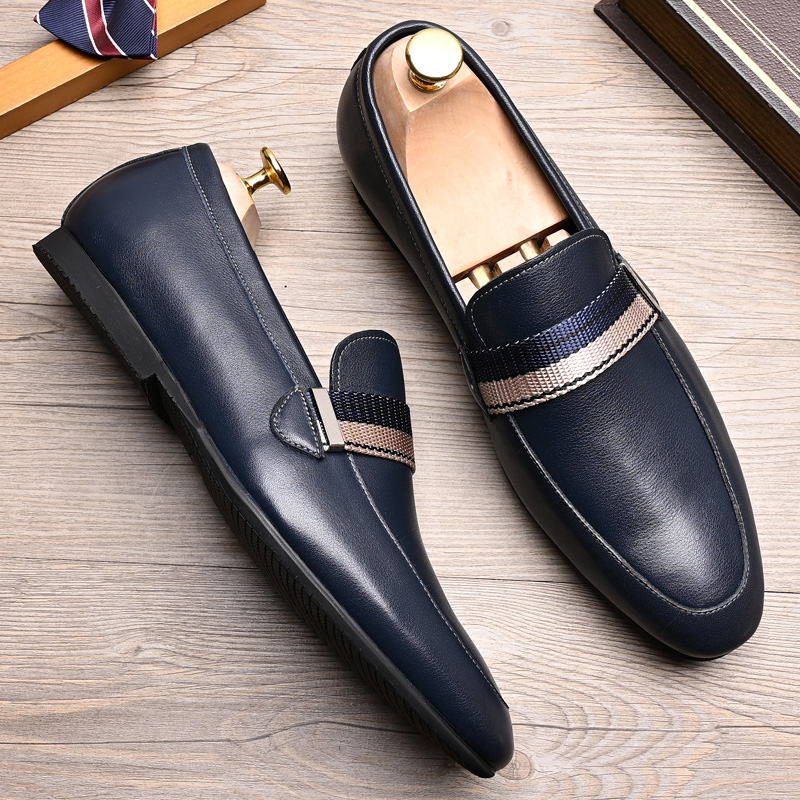 沃皮匠头层牛皮一脚蹬休闲皮鞋英伦潮流真皮豆豆鞋乐福鞋春夏单鞋