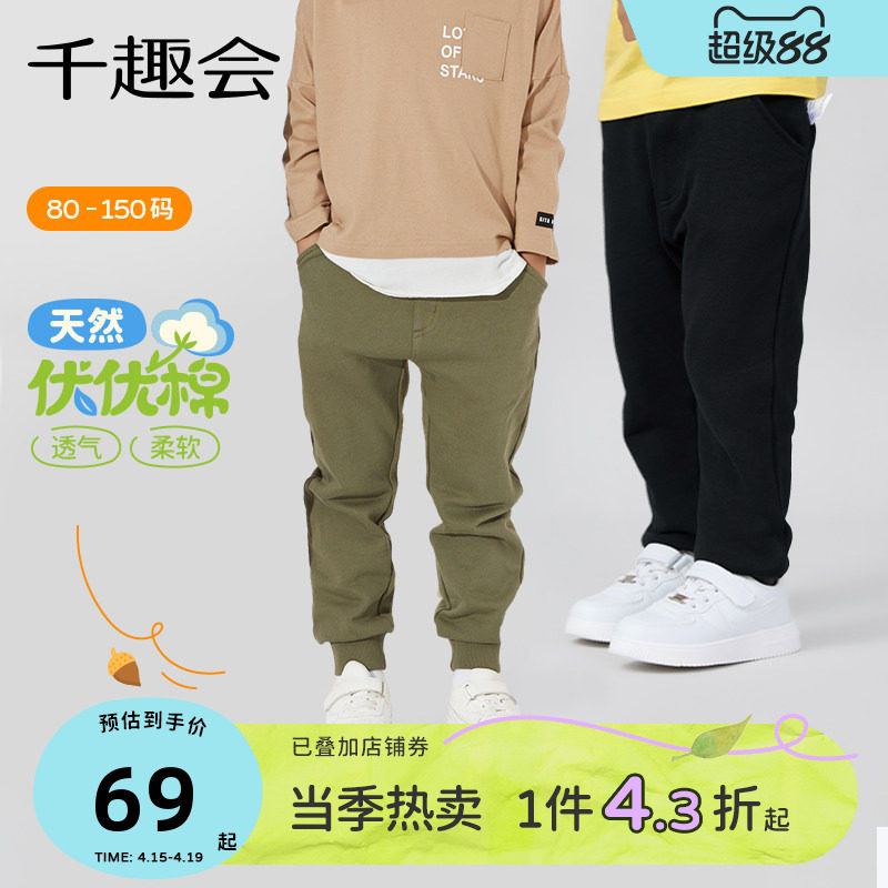 千趣会童装儿童26年春秋长裤休闲百搭男女童弹力棉宝宝舒适运动裤