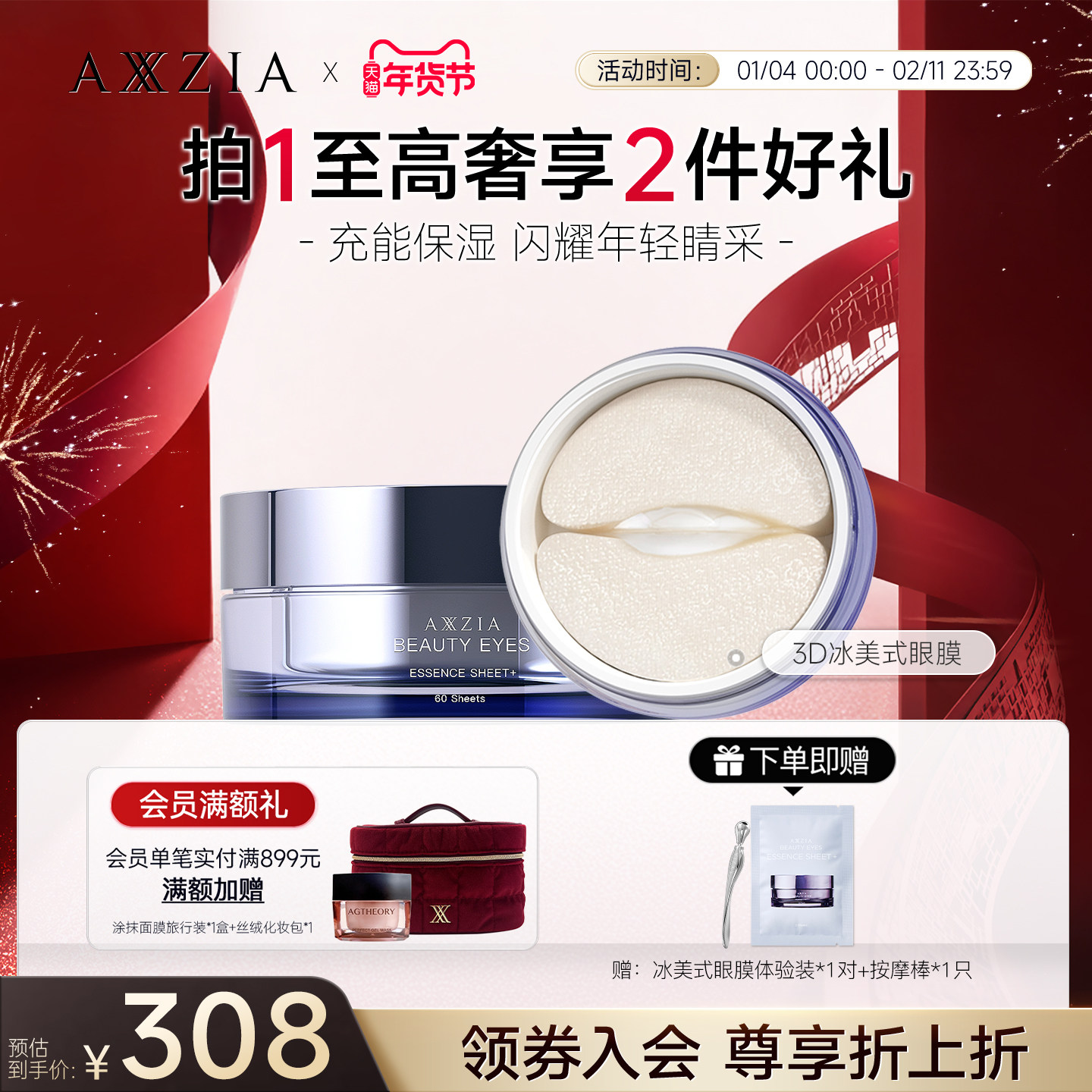 【蒋欣推荐】AXXZIA晓姿3D冰美式眼膜舒缓眼周修护眼膜 60片/罐