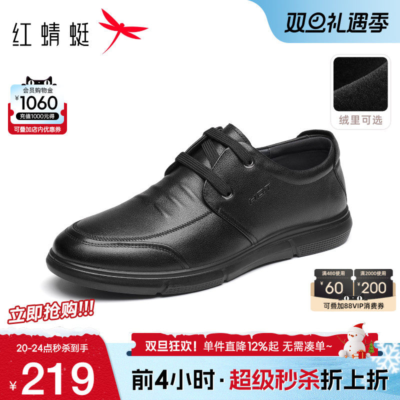 红蜻蜓男鞋秋冬真皮休闲皮鞋男士软底一脚蹬鞋子休闲鞋中年爸爸鞋