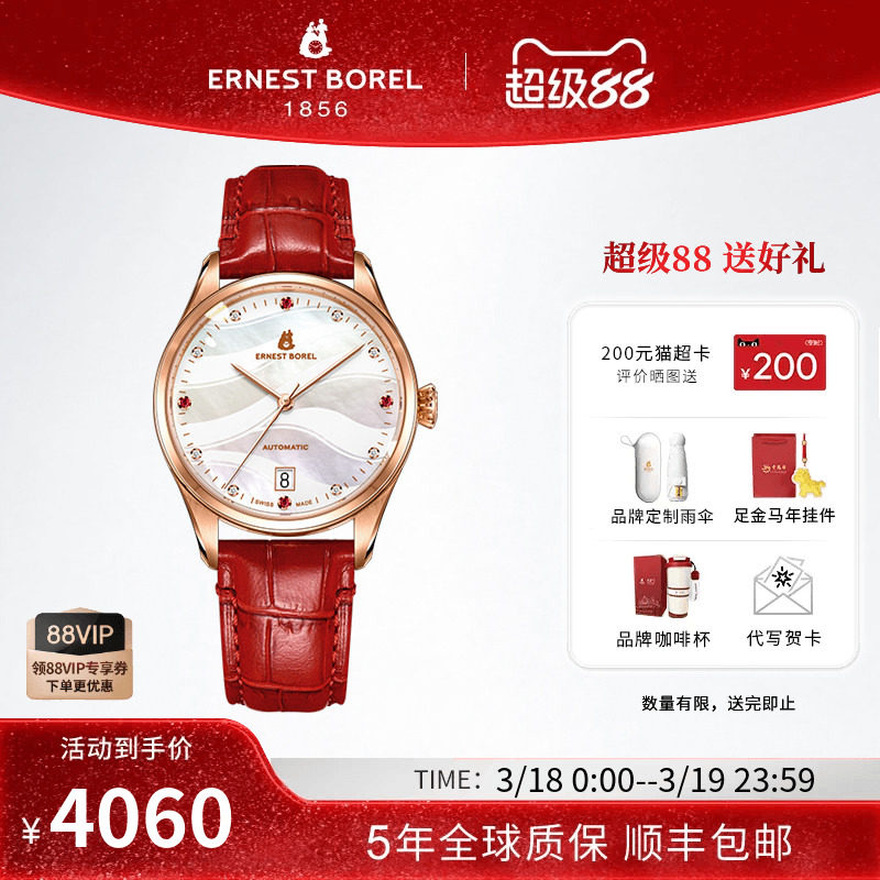 瑞士依波路手表女士皮带机械手表女自动机械机芯高级轻奢日历腕表