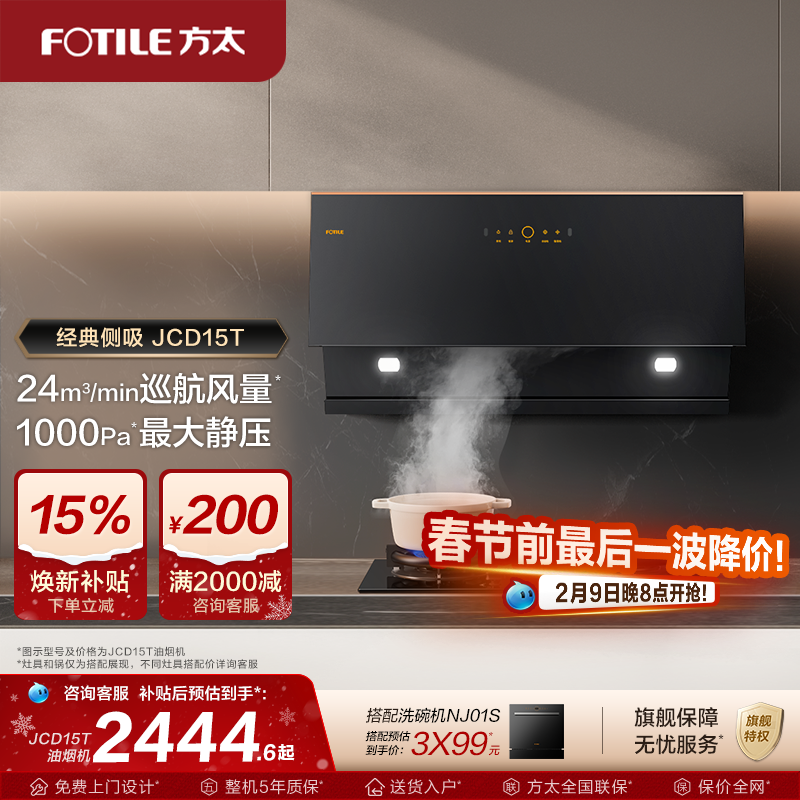 方太油烟机JCD15T家用变频侧吸油烟机排烟机抽油烟机官方旗舰店