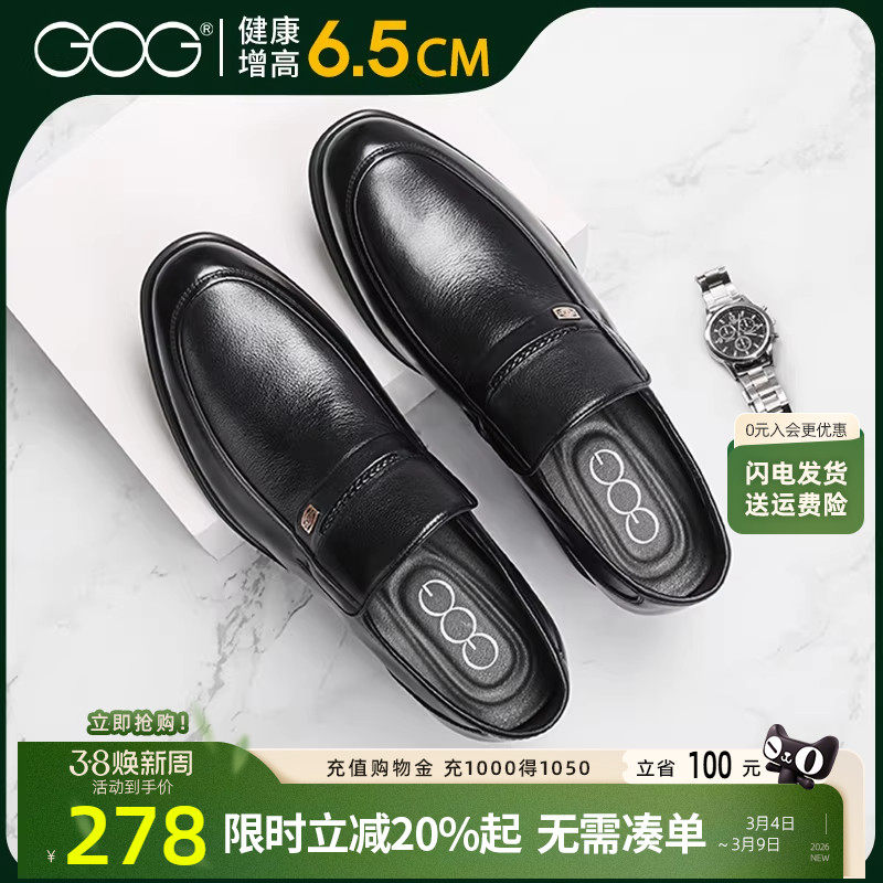 高哥增高皮鞋男春季新款一脚蹬真皮男鞋正装商务隐形内增高鞋子