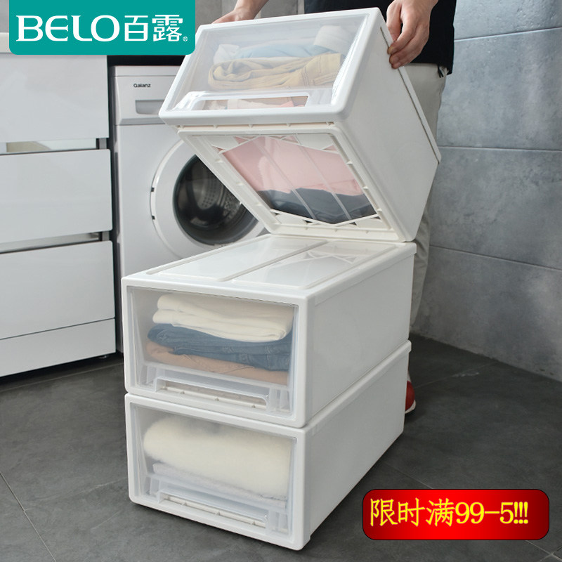 百露卧室抽屉式收纳箱透明塑料衣柜衣橱收纳衣服整理箱加厚储物箱