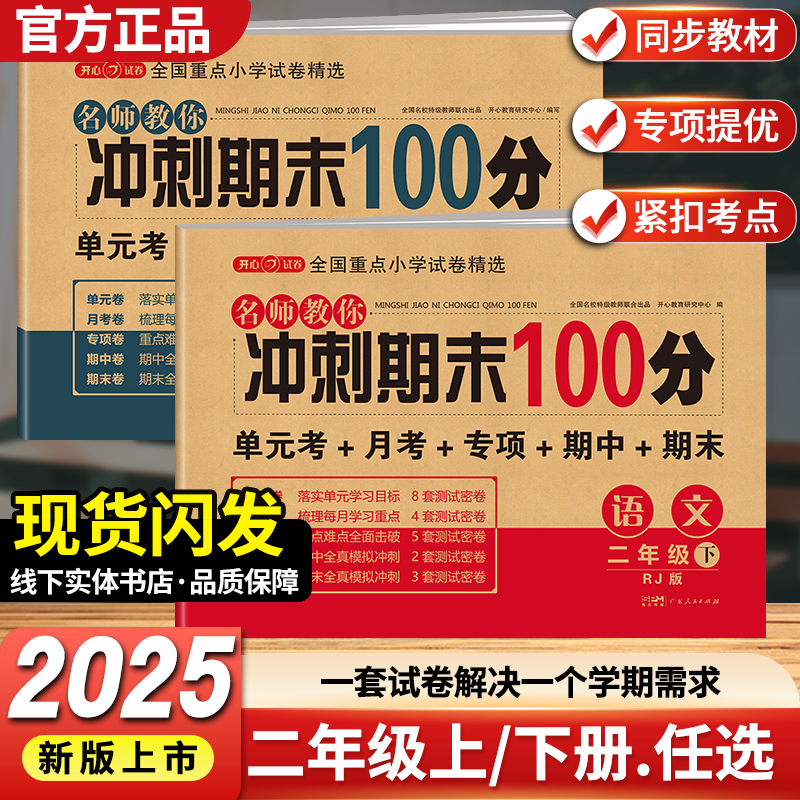 二年级上册下册试卷测试卷全套人教版2025新版冲刺期末100分试卷语文数学二年级