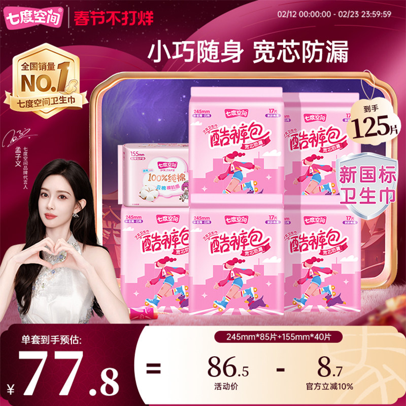 【春节发货】七度空间卫生巾酷裤包掌心极薄姨妈巾便携日用棉柔