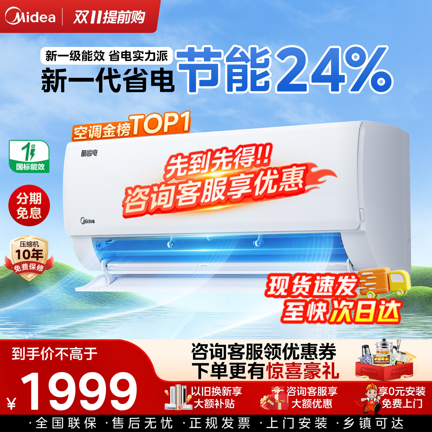 【新品】美的空调酷省电挂机大1匹p新一级变频冷暖官方旗舰店