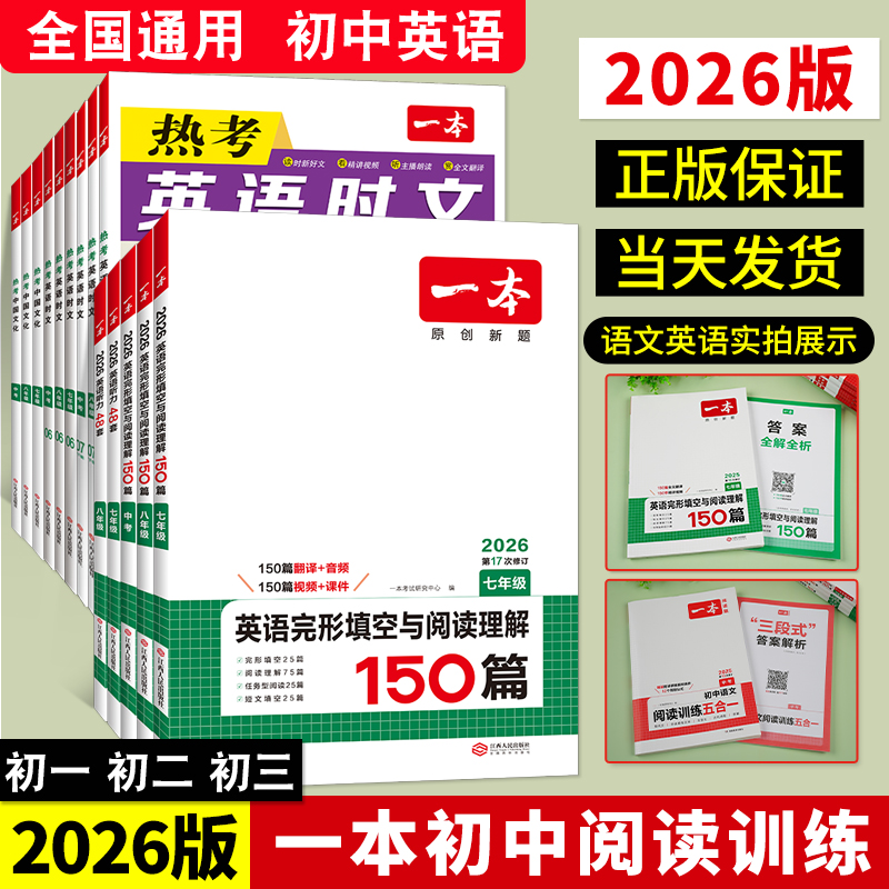2026版初中一本英语完形填空与阅读理解150篇七年级八年级九年级中考真题专项训