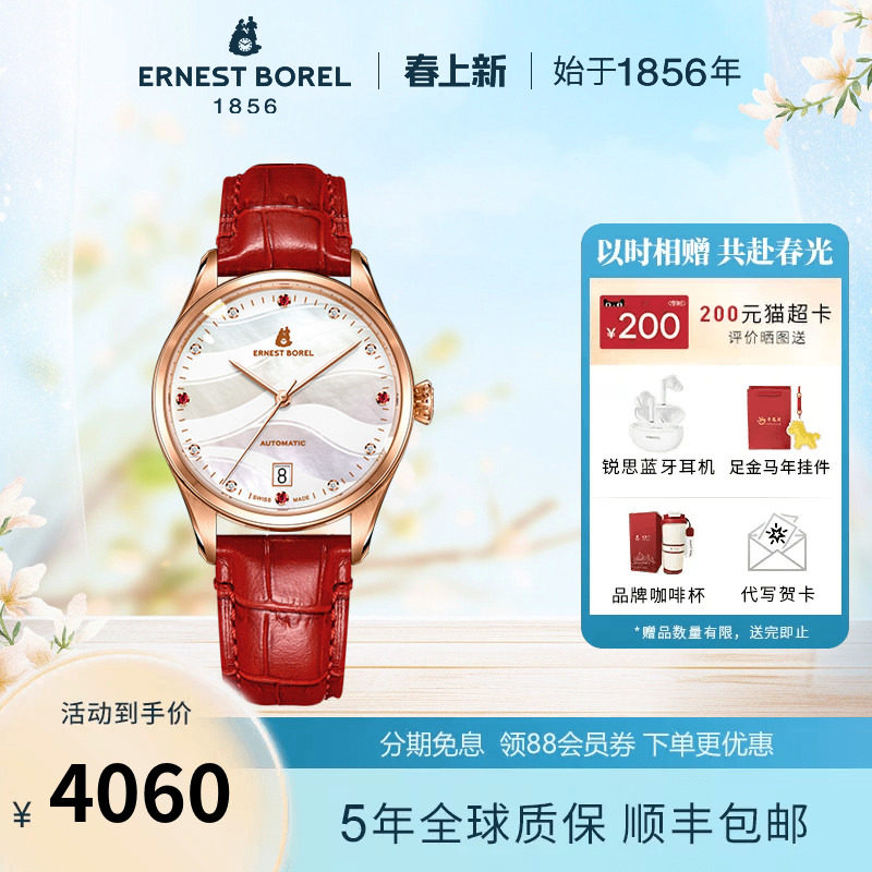 瑞士依波路手表女士皮带机械手表女自动机械机芯高级轻奢日历腕表