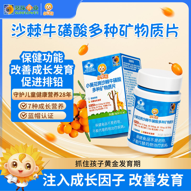 小葵花沙棘牛磺酸多种矿物质片钙铁锌儿童钙片补钙长高青少年成长