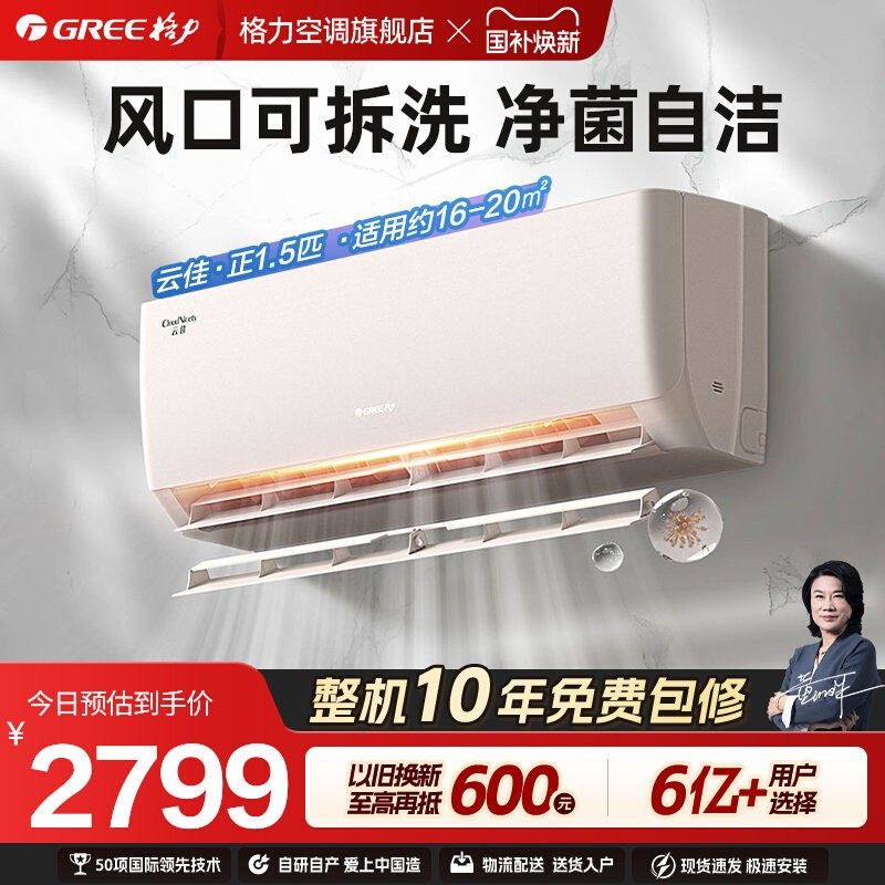 格力官方空调挂机正1.5匹变频卧室家用挂式冷热两用节能正品 云佳