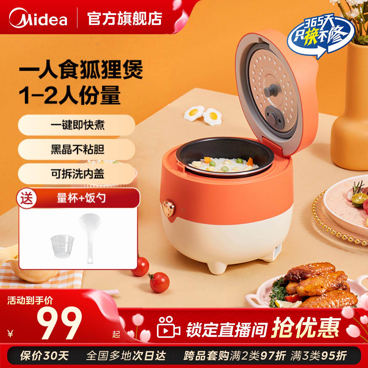 美的一人食电饭煲1到2人家用迷你小型电饭锅宿舍小功率煮女生礼物