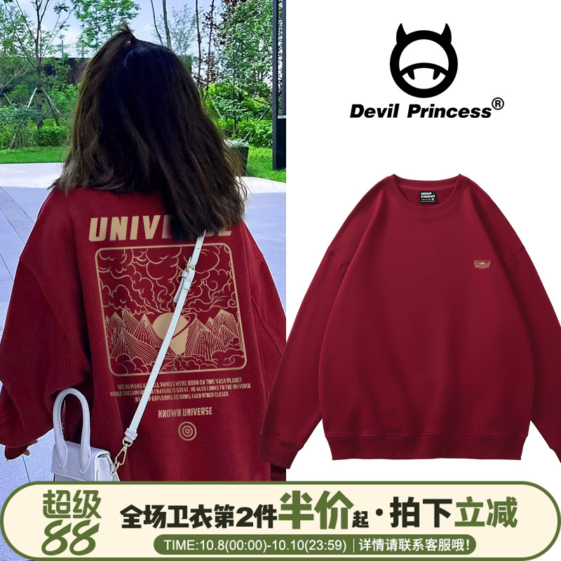 酒红色vibe慵懒风连帽卫衣女2025新款春秋薄款ins宽松学生上衣潮
