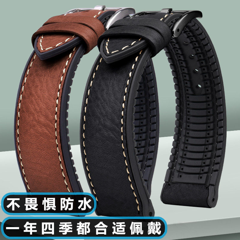 适用欧米茄超霸海马表带真皮 汉米/密尔顿 帝舵陀 硅橡胶底手表带