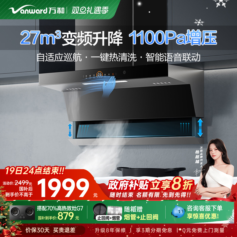 [政府补贴]万和小双翼家用厨房顶侧双吸大吸力变频抽油烟机WL970