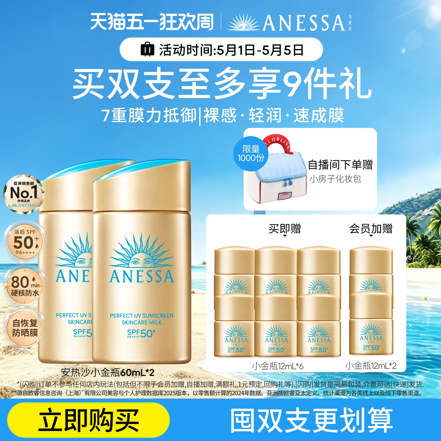 【金瓶套组】安热沙小金瓶防晒霜乳60ml*2高倍耐晒轻薄清爽防水