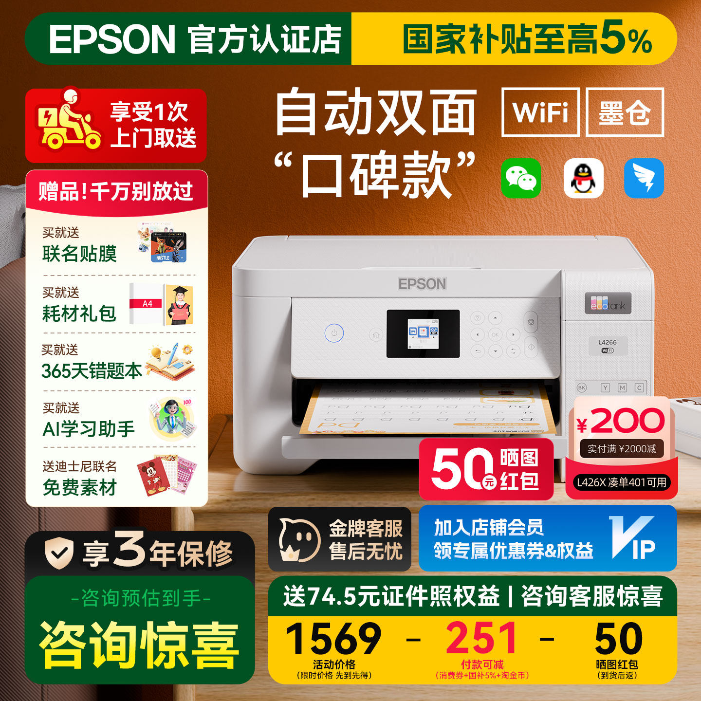 【政府补贴】爱普生墨仓式打印机自动双面家用小型L4266/4268/4263彩色