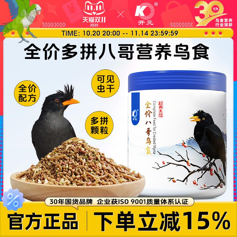 • 泡美丽»»开元全价八哥鸟食饲料林八哥鸟粮黑八海八哥鹩哥营养专用鸟料食料