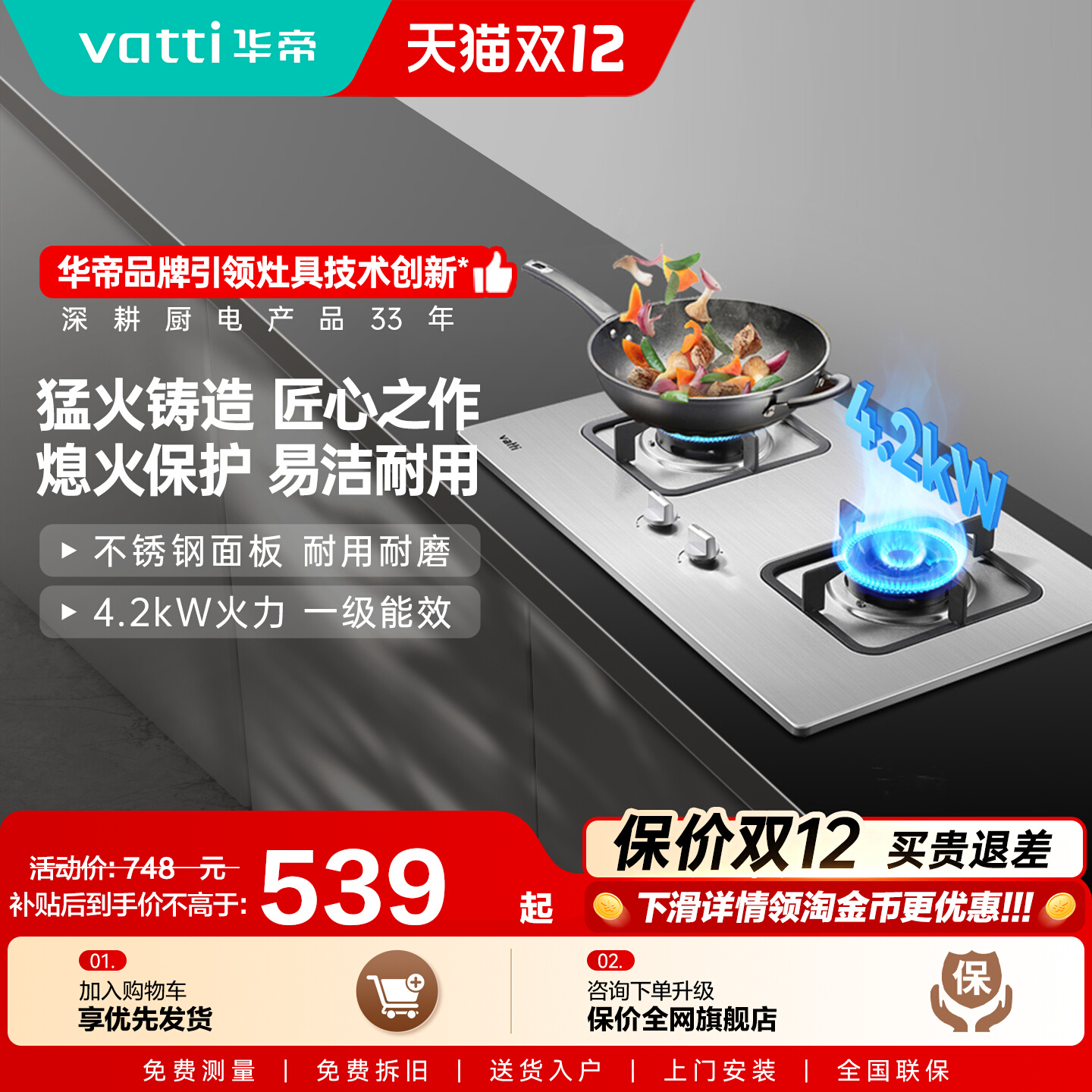 华帝燃气灶i10039A不锈钢煤气灶双灶家用天然气炉灶台液化气灶具