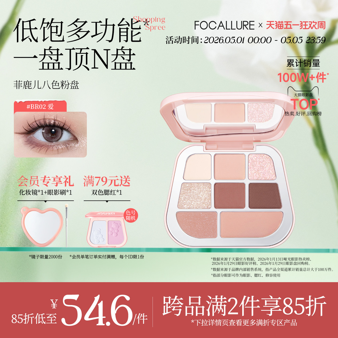 • 泡美丽»»菲鹿儿缎光八色眼影盘大地色多色系哑光爆闪彩妆日常淡妆初学者女
