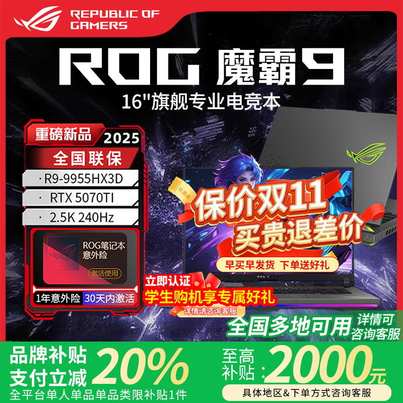ROG魔霸新锐2025 新款5060 5070Ti 华硕魔霸9 游戏本笔记本电脑