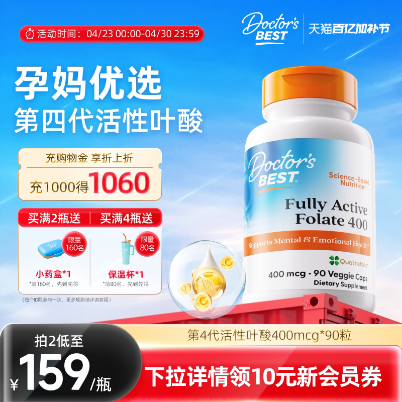 Doctors Best多特倍斯金达威活性叶酸多维营养信心甲基孕前vb