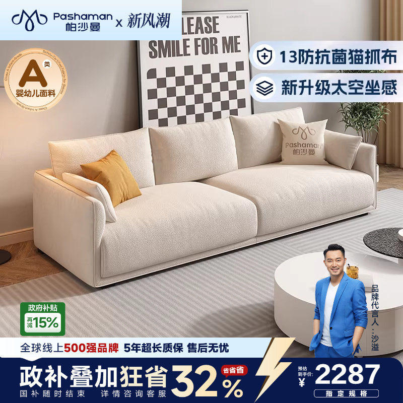 帕沙曼新款布艺沙发小户型客厅北欧简约奶油风模块直排猫抓布宠物