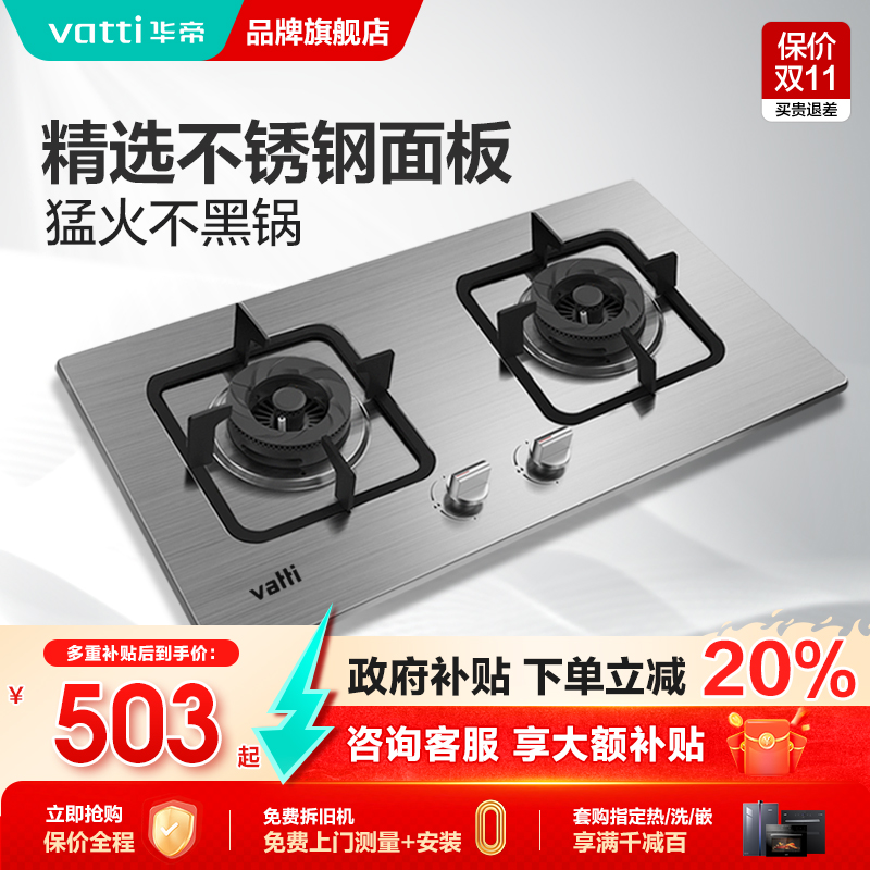 华帝燃气灶官方旗舰店煤气灶液化气天然气灶不锈钢嵌入式双灶家用
