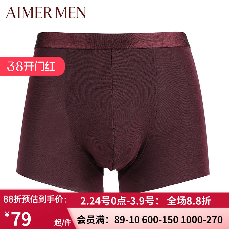 aimer men爱慕先生 男士酒红色莫代尔无痕中腰平角薄内裤NS23A612