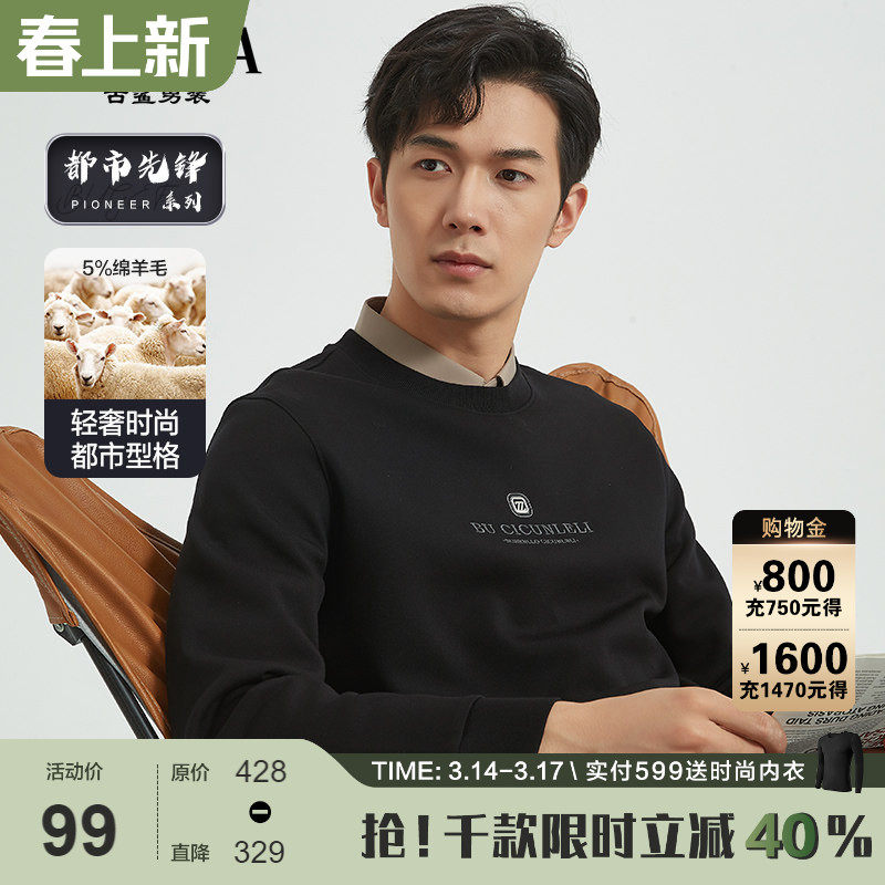 【绵羊毛卫衣】古鲨黑色长袖T恤男轻奢简约圆领修身休闲春装新