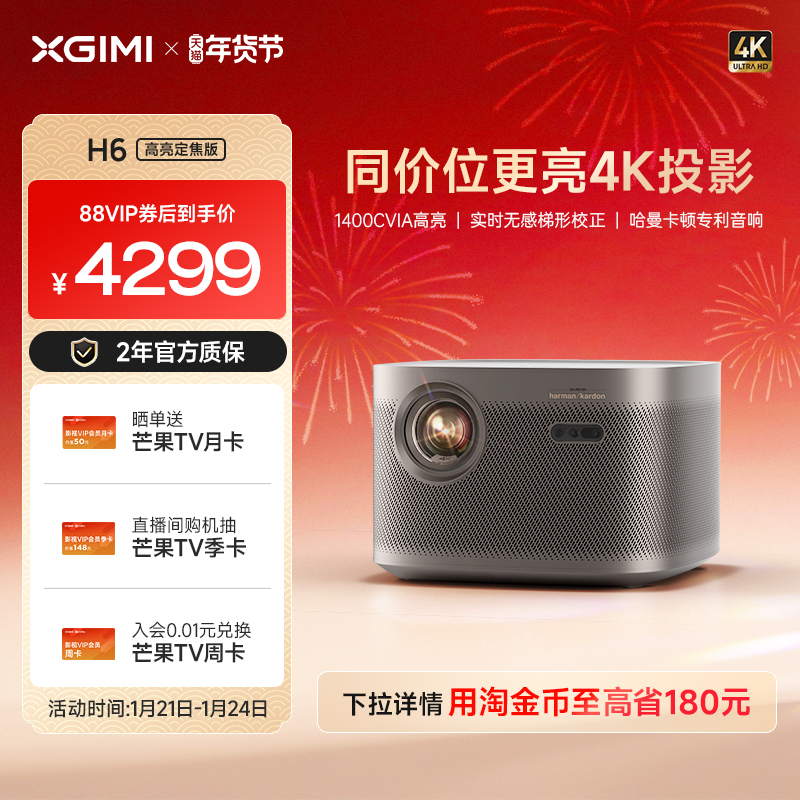 极米H6高亮定焦版4K家用投影仪超高清高亮度智能投影机卧室客厅大屏